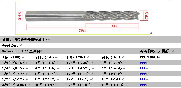 HSS01-高速刚单刃铝窗型材专用铣刀