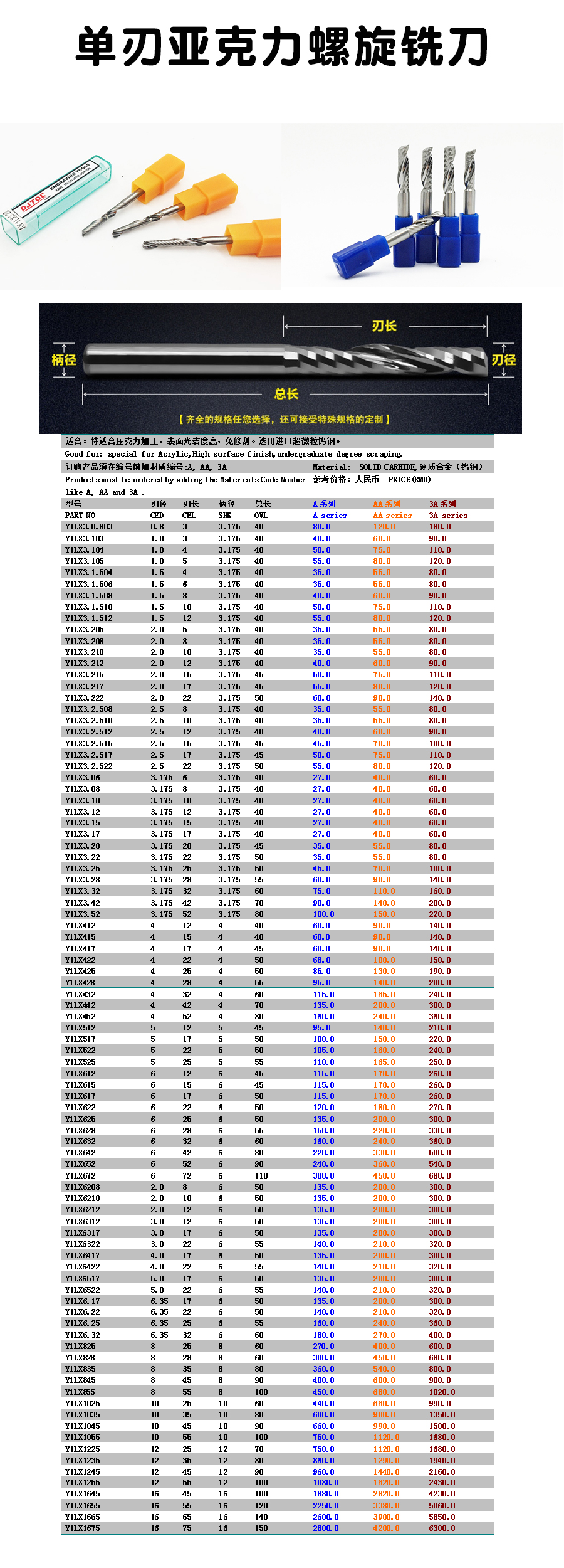 高光刀具、迷你字刀具、单刃铣刀、TCT铣刀