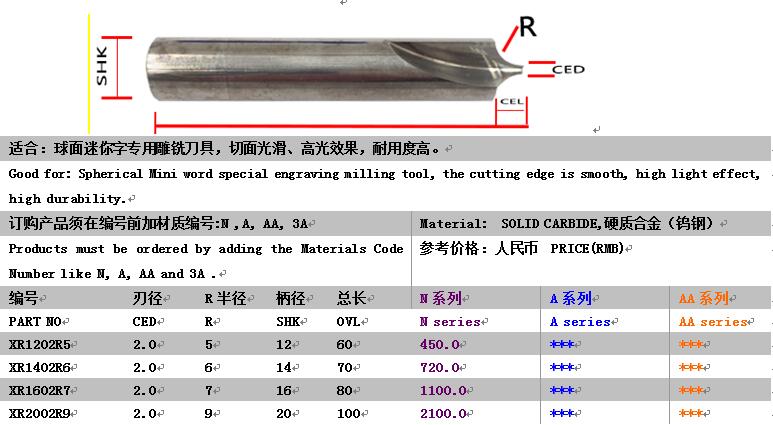 R球面迷你字刀具